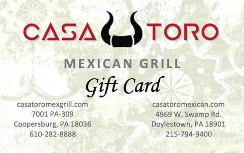 BUY 5 $25 Casa Toro Gift Cards (or buy $125 worth of Casa Toro Gift Cards),