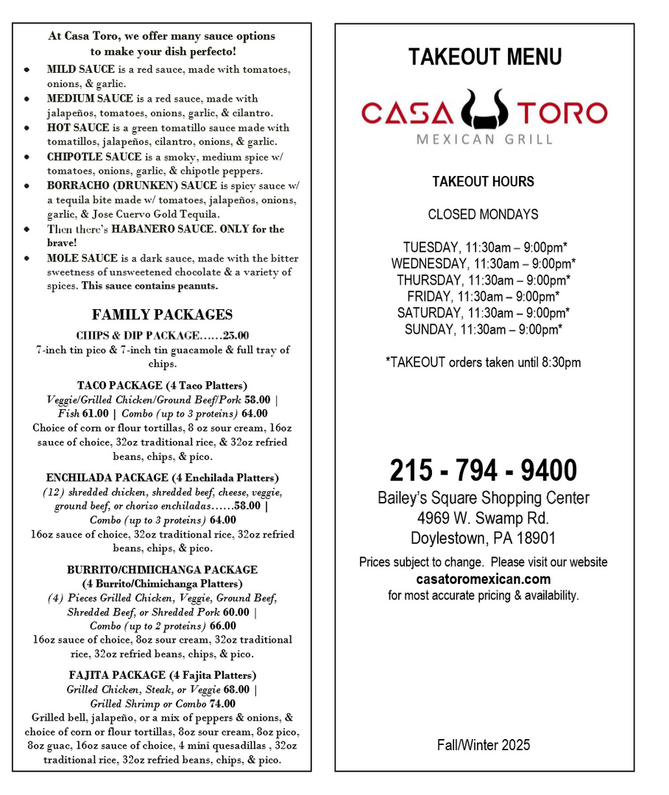 DoorDash delivers within a 5-mile radius of Casa Toro in Doylestown.
